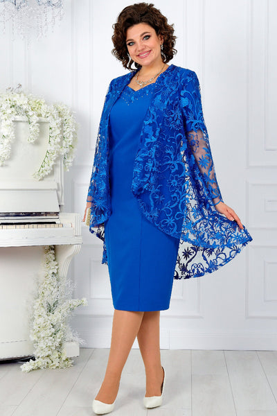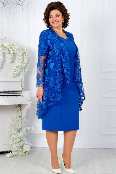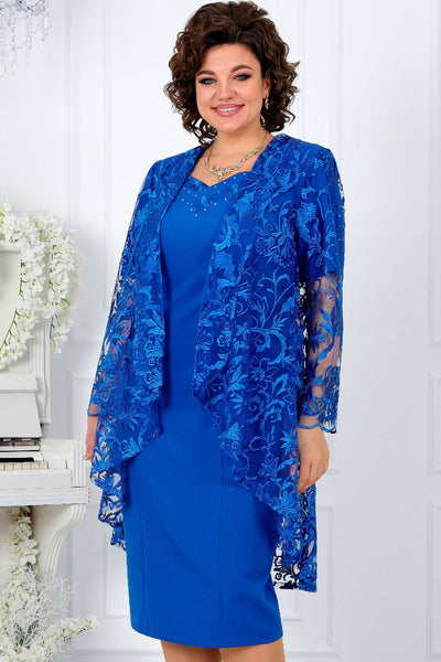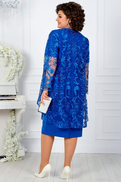 Setul este format dintr-un cardigan din dantela si o rochie, creand un aspect frumos si elegant pentru ocazii speciale.